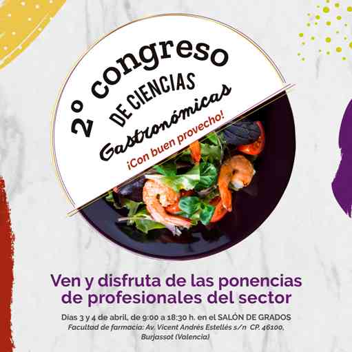 El 2º Congreso de Ciencias Gastronómicas se celebra en la Facultad de Farmacia de la Universitat de València los días 3 y 4 abril. Su objetivo es reflexionar sobre los diferentes campos de estudio que giran en torno al Grado de Ciencias Gastronómicas con talleres, charlas y ponencias organizadas por expertos del sector. En el marco de este congreso, se va a hacer entrega de los Premios Sapiña a la Trayectoria Profesional y la Innovación que reconocerán a los chefs Begoña Rodrigo y José Manuel Miguel, respectivamente.